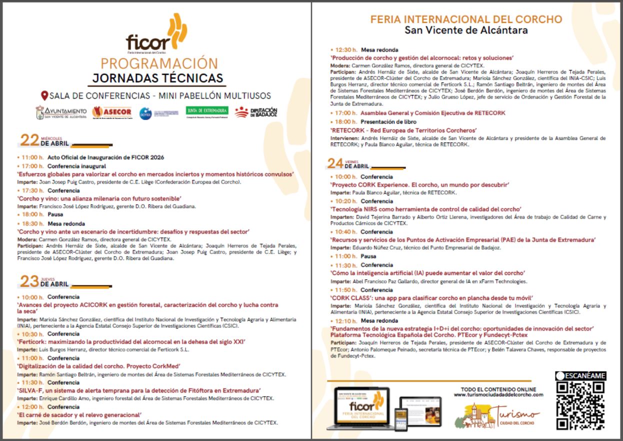 La PROGRAMACIÓN de la Jornadas Técnicas de la Feria Internacional del Corcho 2026 es la siguiente: