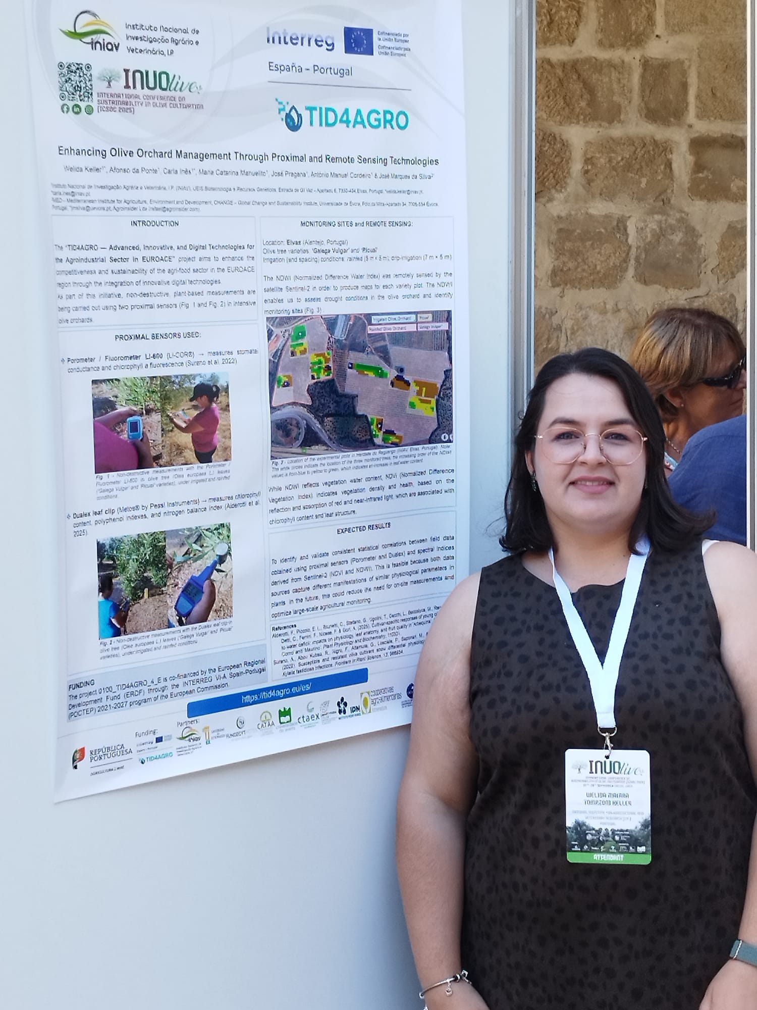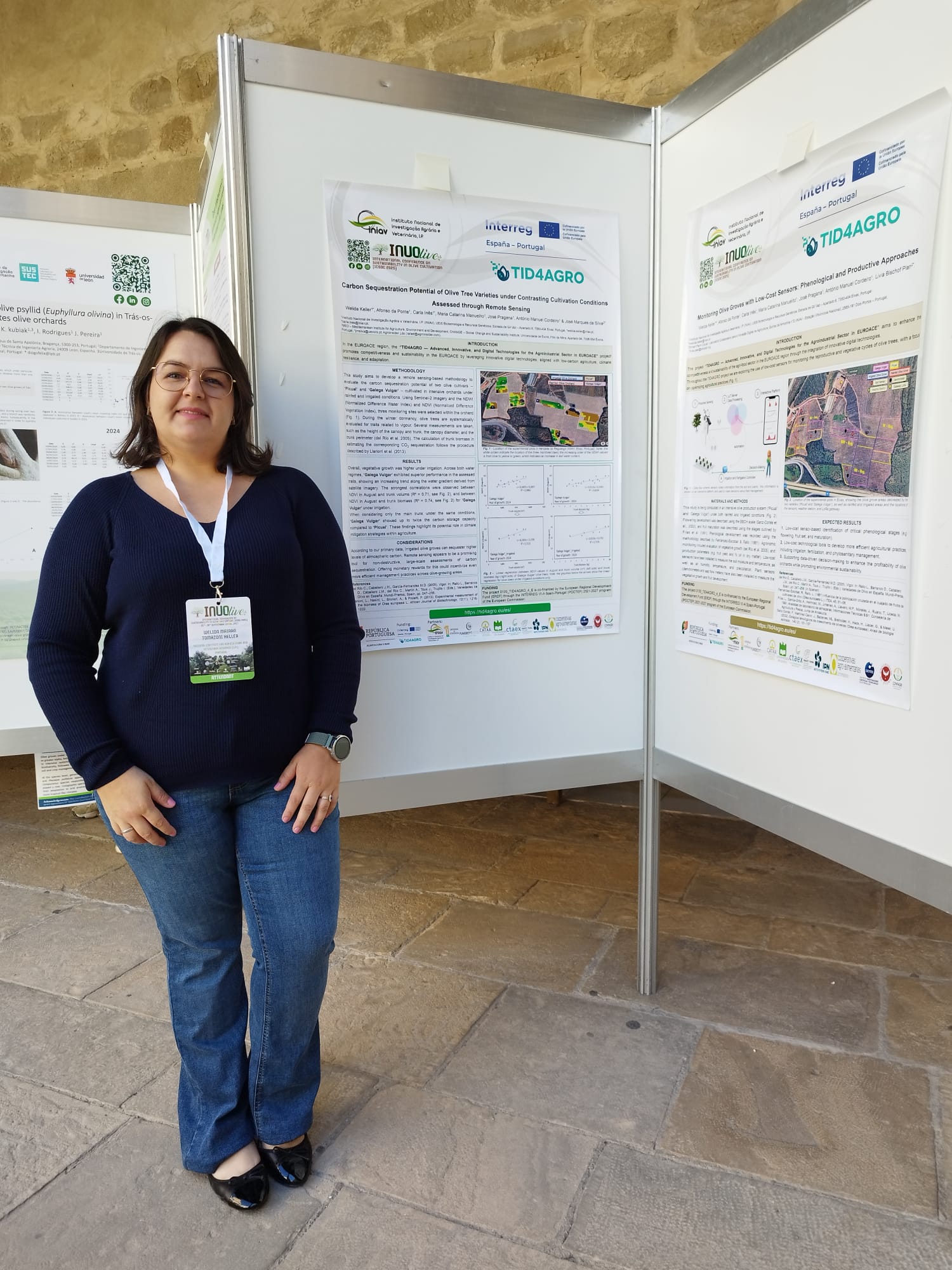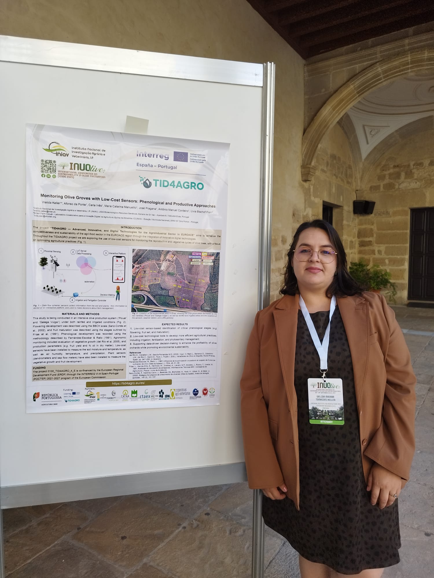 El equipo de Olivicultura del INIAV, ya reforzado con la becaria de investigación Welida Keller, participó en la Conferencia Internacional sobre Sostenibilidad en el Cultivo del Olivo (ICSOC 2025) para presentar los resultados obtenidos en el marco de las Acciones 4.1 («Monitorización, sensorización y digitalización de explotaciones agrícolas y forestales para aumentar el rendimiento y la producción de los cultivos. Acciones de digitalización destinadas a mantener los recursos genéticos de las especies agrícolas y forestales») y 4.3 («Digitalización de los cultivos agrícolas y gestión del suelo para su conversión en secuestradores de CO2. Utilización de herramientas digitales en el cultivo de cerezas, higos, aceitunas, almendras, pastos y arbustos para evaluar la capacidad de secuestro de carbono») del proyecto TID4AGRO.