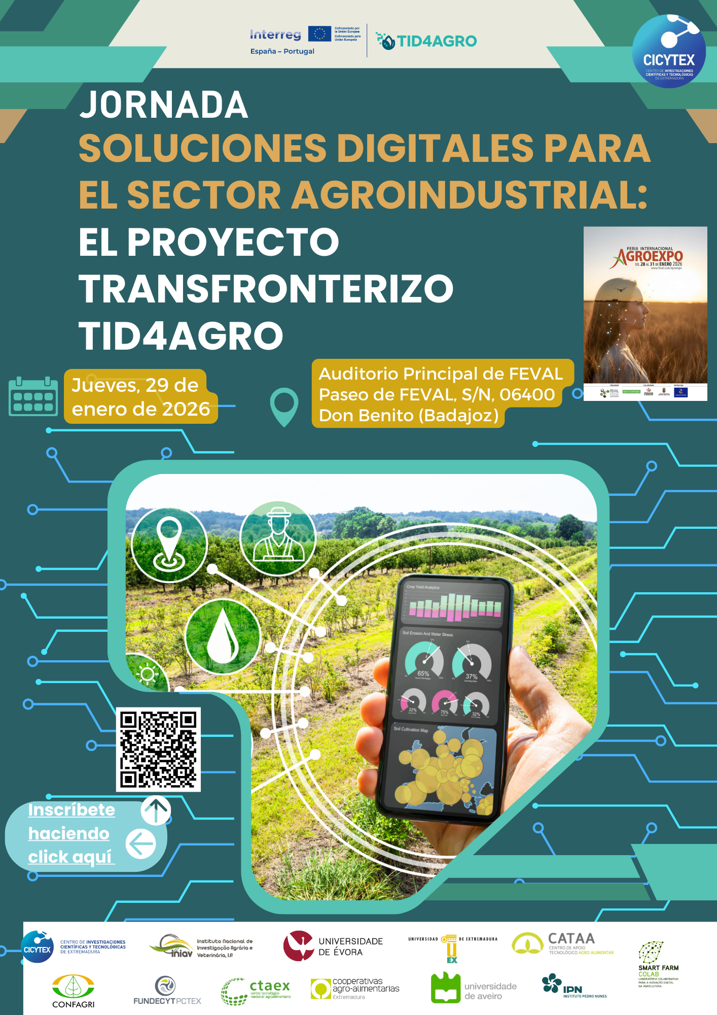 El titular del presente Sitio es POCTEP TID4AGRO, con domicilio en Polígono Industrial "El Prado", C/Pamplona, Sector D Parcela 64. 06800 - Mérida (Badajoz), España. CIF: XXX
